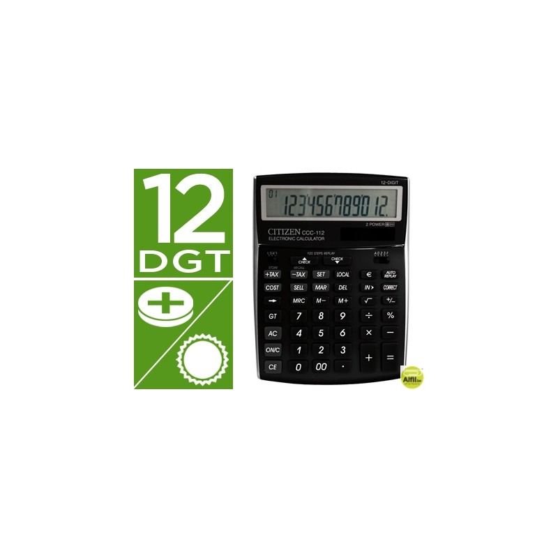CALCULADORA CITIZEN SOBREMESA CCC-112 B 12 DIGITOS NEGRA 202X155X33 MM